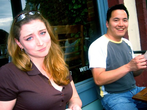 On Friday, I met up briefly with Rebecca down at the Six Acres in Gastown for a few drinks on a patio. It was a good way to start a Friday afternoon, and since I had only woken up a few hours prior, I was definitely in the mood to drink and grab something to eat. Afterwards, we went down to the west-end for some pizza, and to hang out with John, who was busy playing with Dave Olsen’s new microphone on his computer.