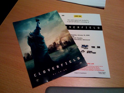 I’m heading out to watch this tonight with Rebecca, John and John. Rebecca had tickets to the Vancouver premiere and invited me along, which is totally exciting. I’m going on the record as saying I’m pretty sure this is going to suck (the trailer reminds me of a techy Blair Witch Project), but it’ll be a fun suck with a bunch of friends. That sounds dirty, I know.