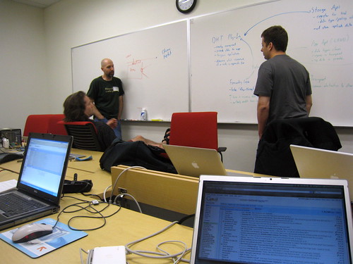We spent most of today hashing out an API for the peer to peer framework. There were lots of debates, a few heated moments, and lots of time spent honing the finer points of the interaction amongst the various components. It was a long, 14 hour day, and thankfully we’re done most of planning.