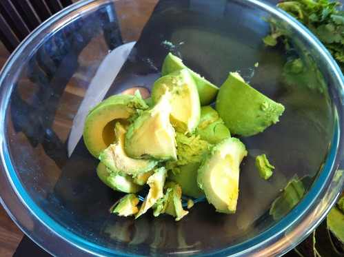 I’ve made about ten batches of guacamole in the last year, each time refining it a bit. It’s actually getting to be pretty good, as evidenced by the number of people who want me to keep making it. So, I thought I’d do up a little post explaining how to make it.