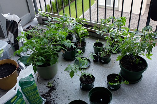 One of the challenges with growing fruits and vegetables on your patio is that it’s really hard to get them enough water, especially in this kind of heat. With a normal garden, you can soak the soil thoroughly such that the plants basically have a moisture reservoir. For a plant in a 12″ pot though, there’s really not too much you can do, other than water them twice a day or so, which is what I’m doing.