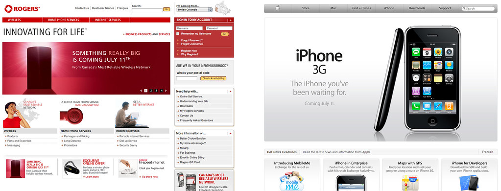 While most of Canada is ecstatic for the release of the iPhone in Canada, one company seems rather mute about the whole event. Ironically, that company is Rogers, the only company that has the technology to actually bring the iPhone to Canada. As Dave pointed out, the Apple website has been updated to reflect all the available information regarding the iPhone in Canada. Roger’s unfortunate marketing campaign involves what exactly? A simple teaser, like we’ve all been living in a cave and have absolutely no idea what’s coming out next month.